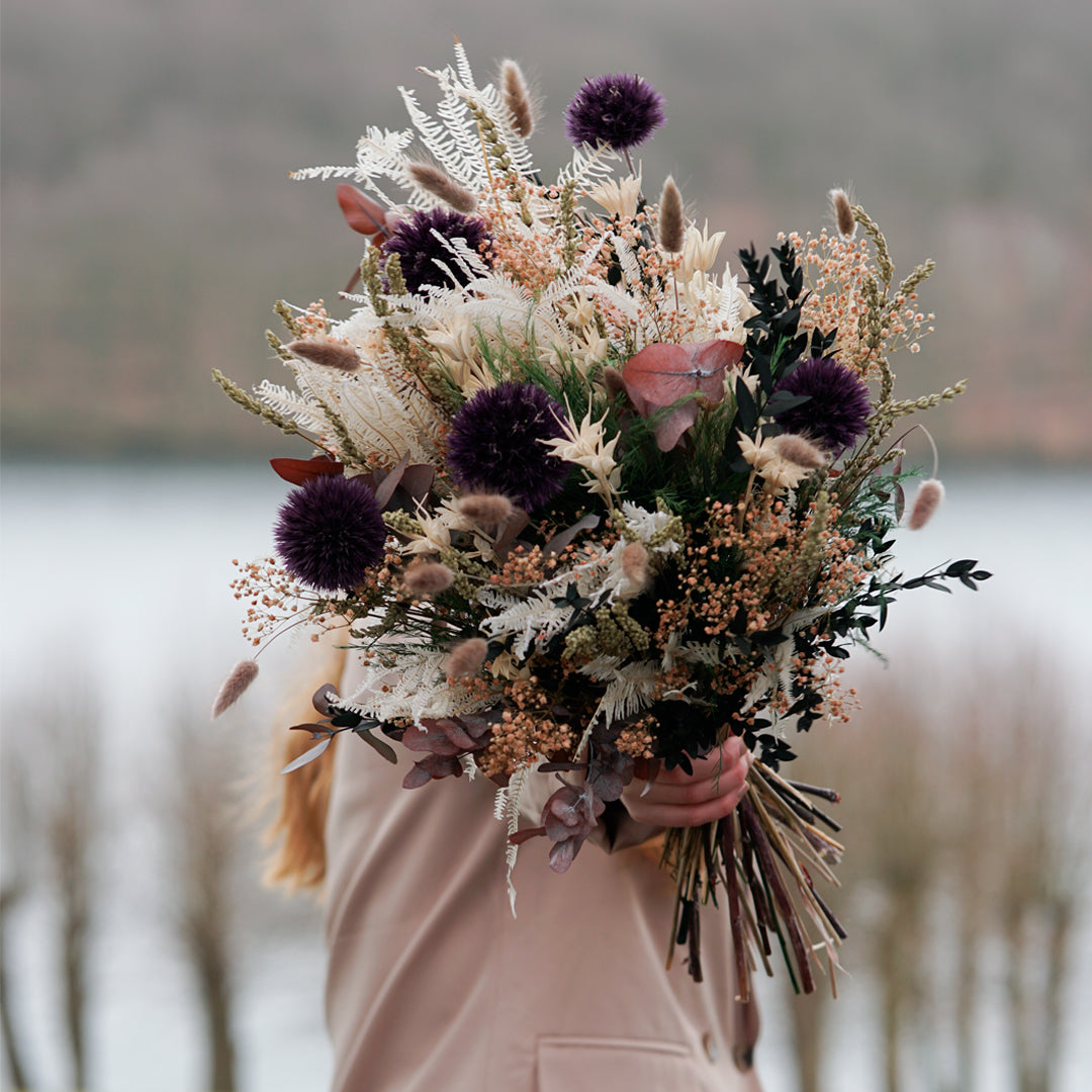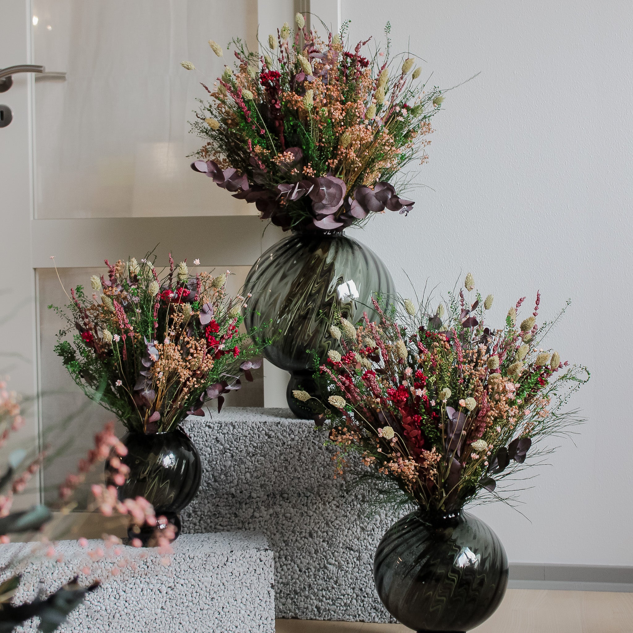 Selv om blomstene våre varer lenge, går vi ikke på akkord med kvalitet, estetikk eller autentisitet, så de har samme tekstur som friske, konvensjonelle blomster - men de krever ikke vann, ressurser eller pleie og er derfor mer skånsomme mot miljøet enn vanlige blomster fra butikken. De dyrkes uten drivhus eller sprøytemidler og har en imponerende holdbarhet på minst seks måneder. Sammenlignet med friske buketter som blir til tørkede blomster etter en uke, vil våre langtidsholdbare buketter fortsatt være vakre og levende lenge etter.