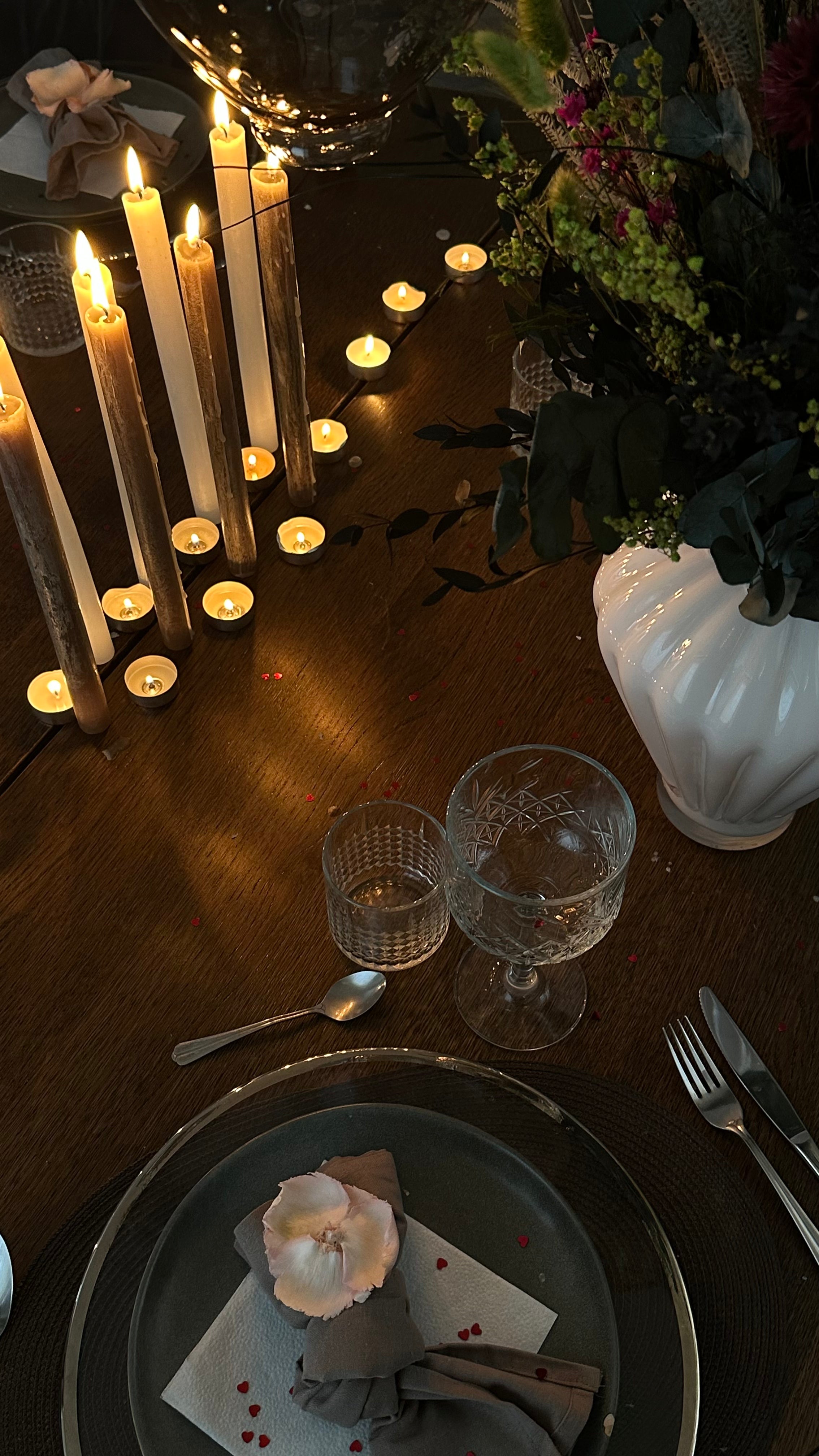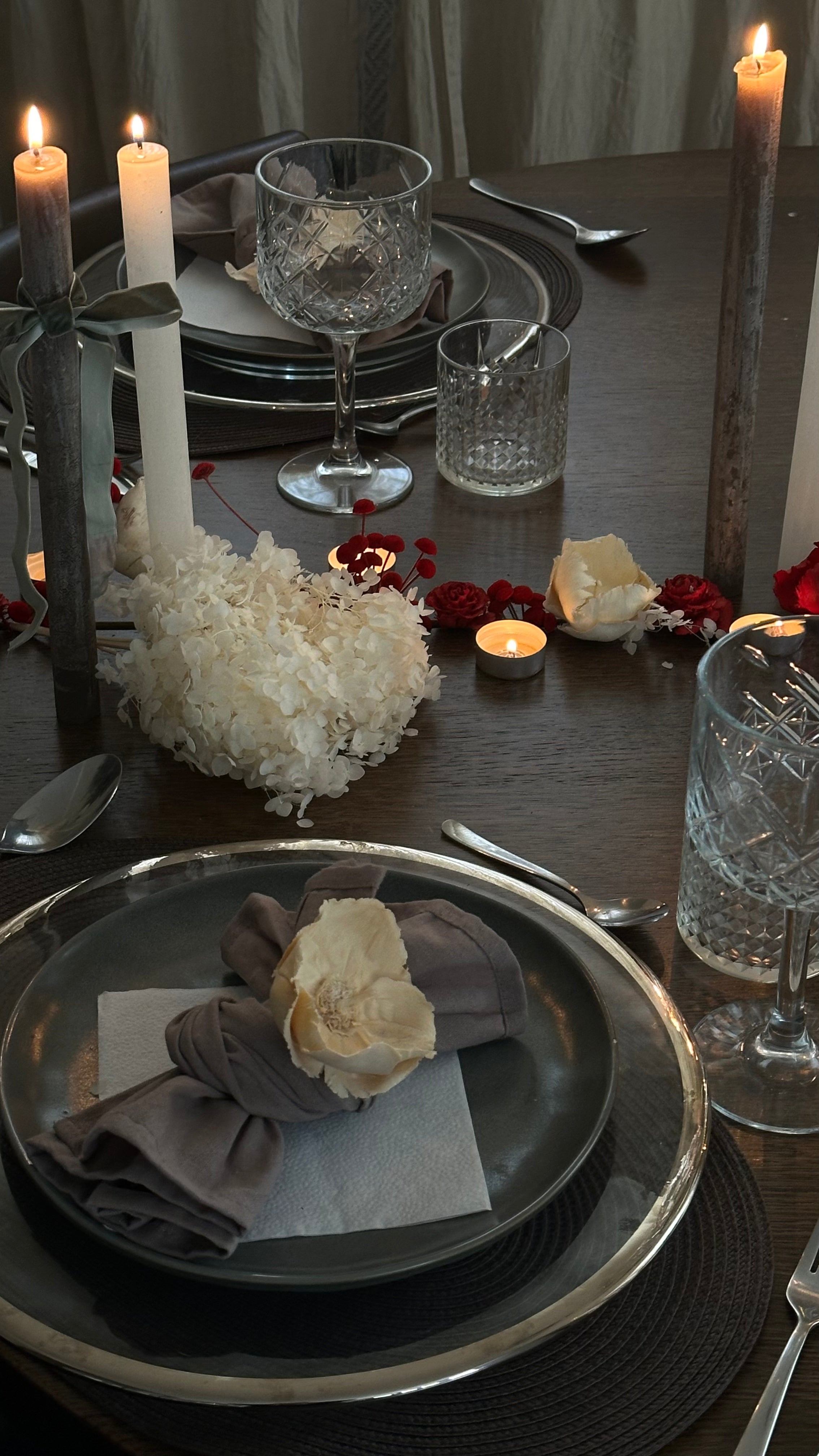 Langtidsholdbare blomster er perfekte som midtpunkt på et romantisk middagsbord. Bruk små vaser med enkle blomsteroppsatser for å skape en elegant og stemningsfull dekorasjon.