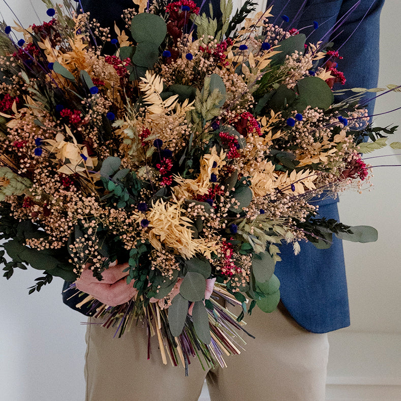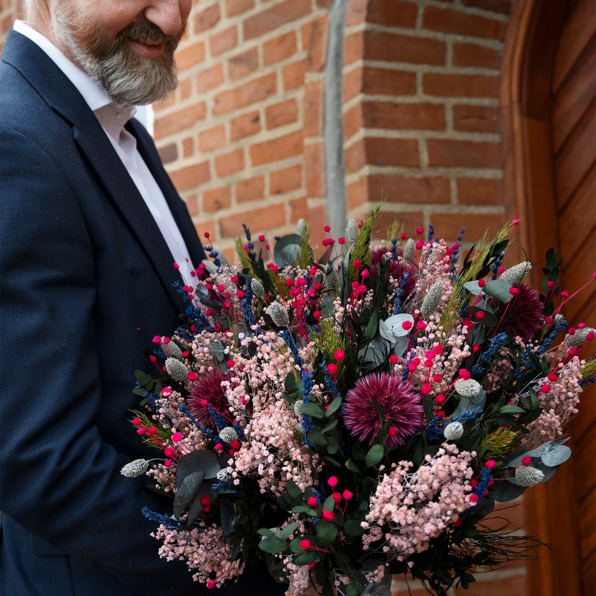 Mange liker å bytte mellom uttrykk gjennom året. Lyse buketter om våren, roligere jordtoner om høsten. Fordi blomstene holder i mange måneder, kan du skape sesongpreg uten at buketten trenger å byttes ut fra uke til uke.