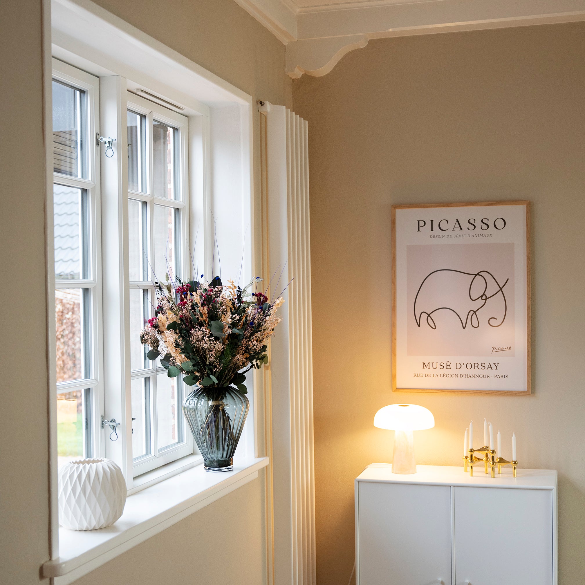 Enten du ønsker en diskret dekorasjon eller en stor blomsterbukett som skaper blikkfang, finner du flere muligheter i sortimentet. De større bukettene passer godt der du vil ha volum og tyngde i innredningen, mens de mindre modellene gir et rolig og balansert preg.