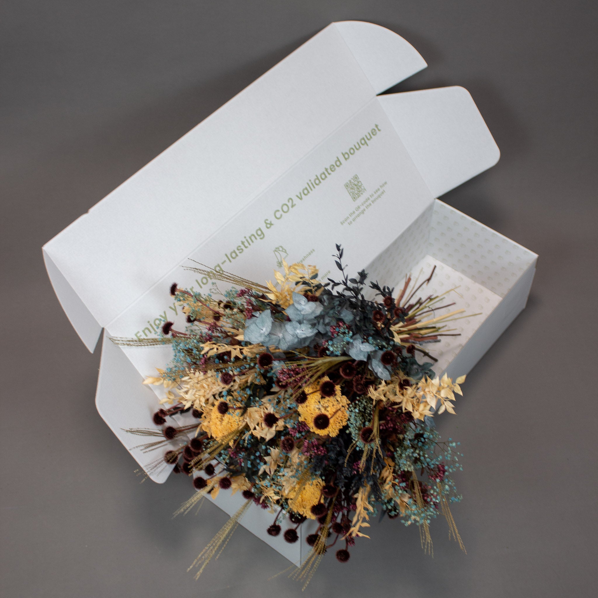 Se vårt utvalg av buketter og dekorasjoner som holder seg vakre og fargerike i minst 6 måneder.
