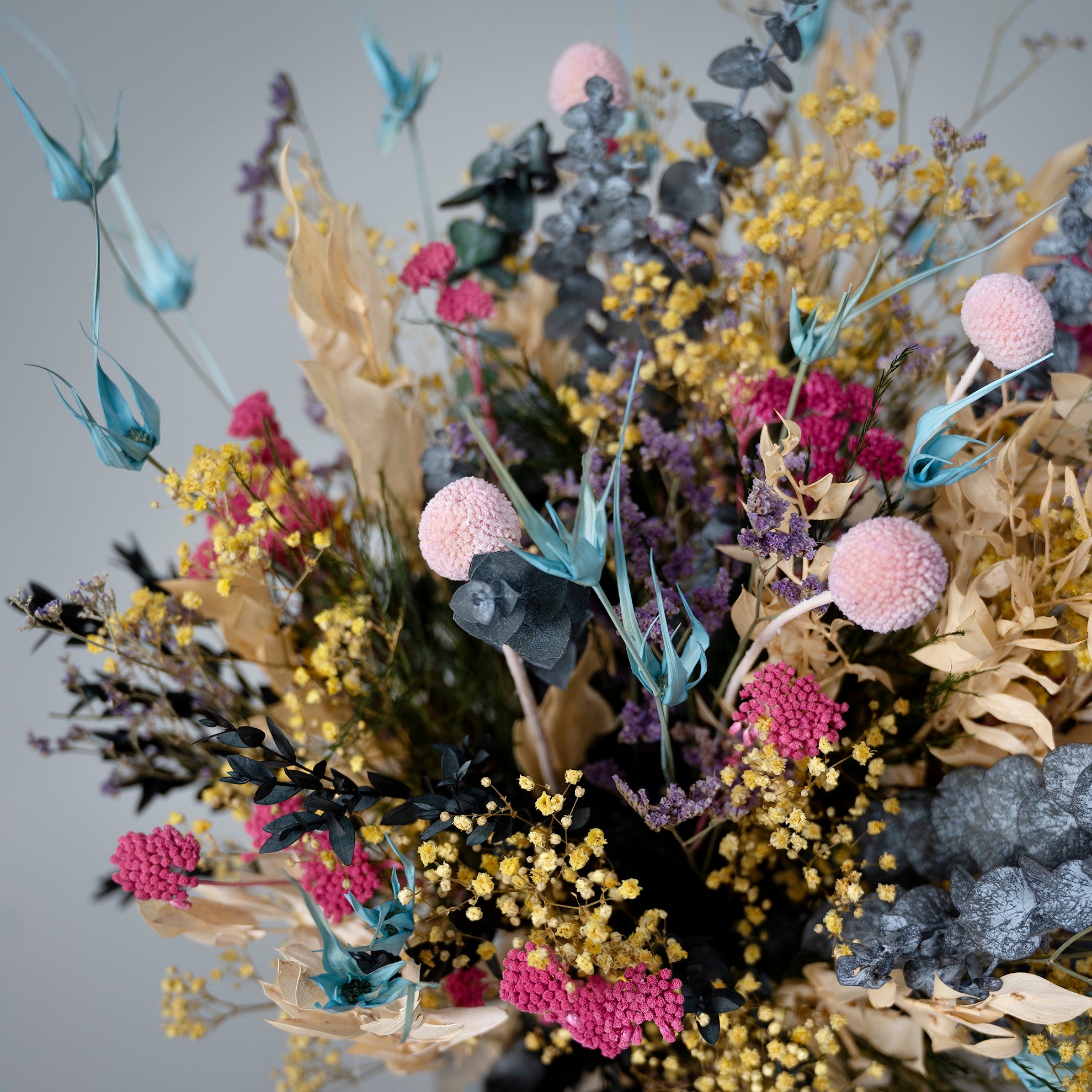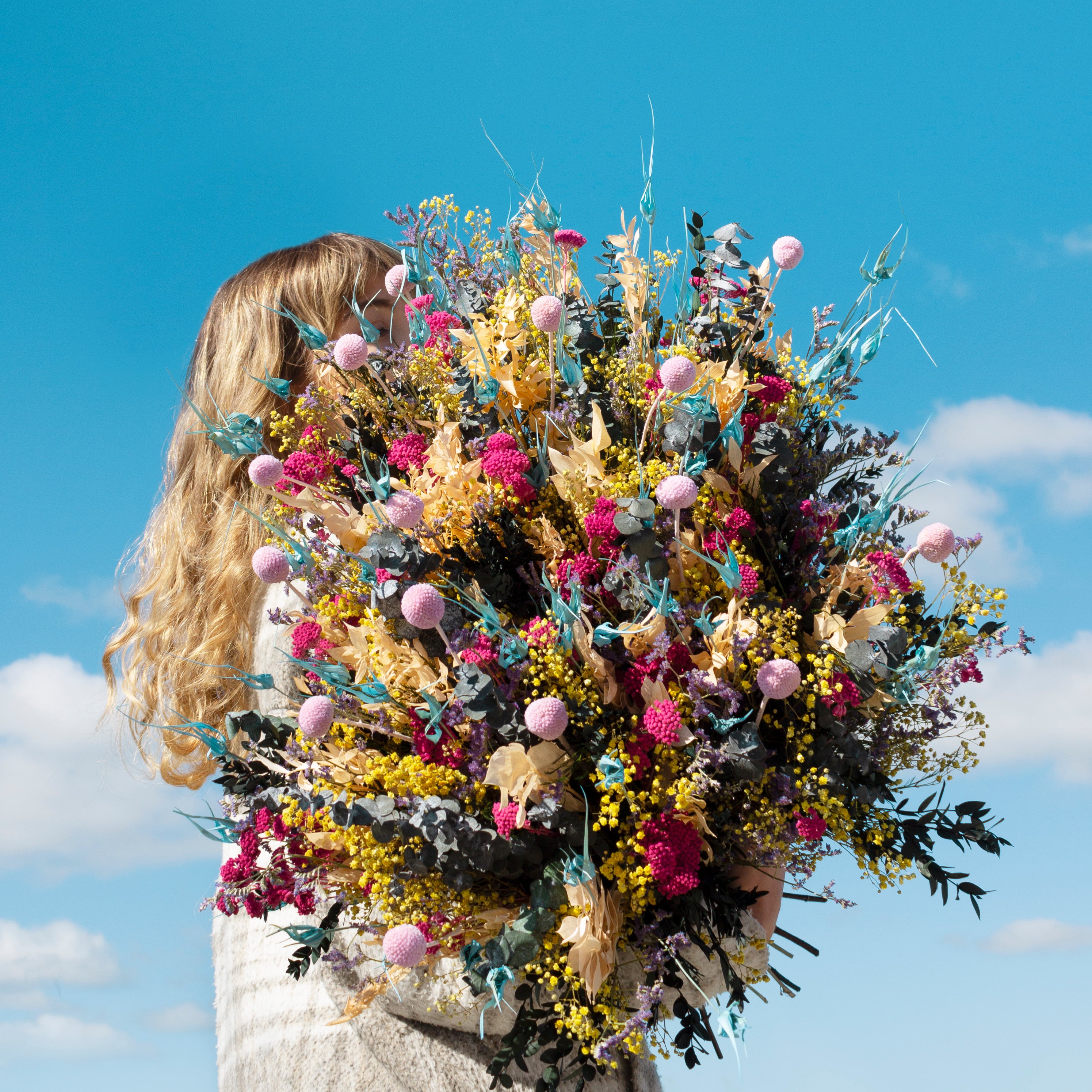 Bukettene våre er ikke helt som tradisjonelle friske eller tørkede blomster - de er et sted midt imellom.