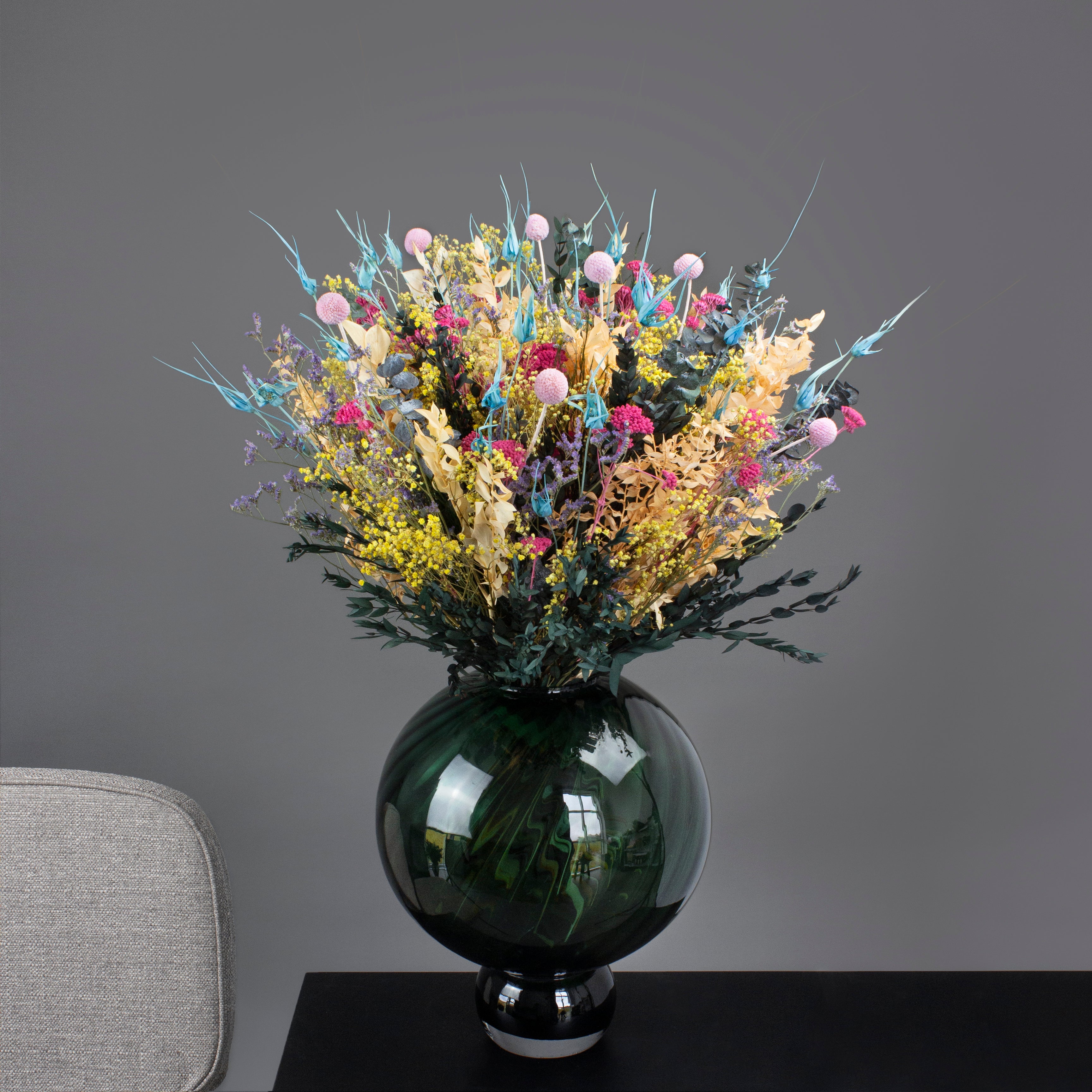 Pompøs - Størrelse Pompøs har en høyde på 60-65 cm og er minst 150 % større enn størrelsen Naturligvis. Denne bukettstørrelsen er perfekt for en stor kjøkkenøy eller gulvvase. Vi anbefaler brede og runde vaser med en høyde på 30-55 cm.