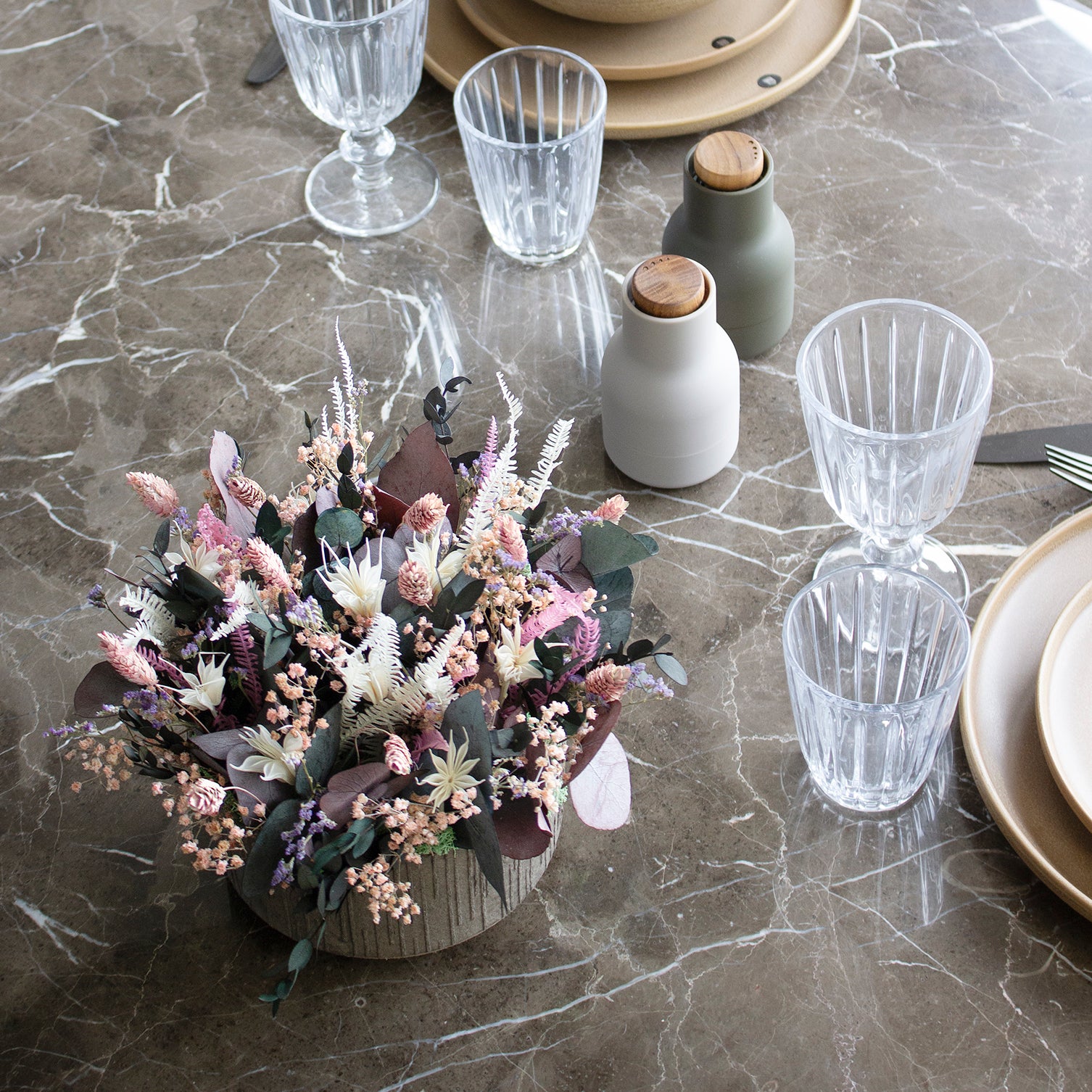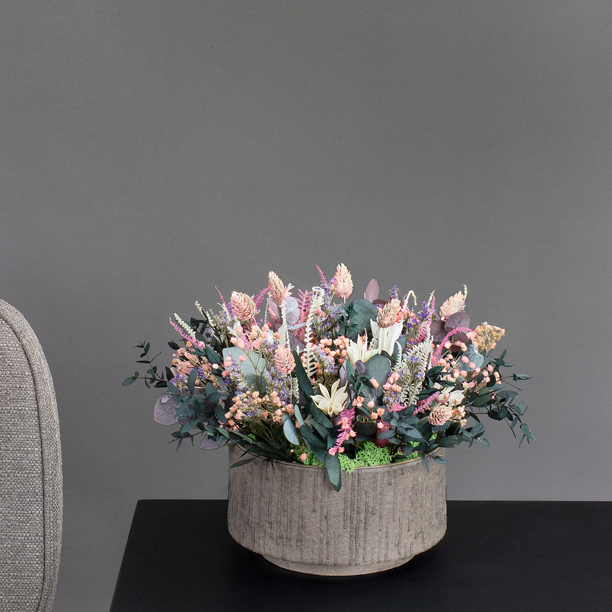 Bukettene våre er ikke helt som tradisjonelle friske eller tørkede blomster - de er et sted midt imellom.