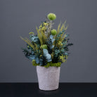 Dekorasjonen er fyldig og naturlig med ulike grønne nyanser, strukturer og lette detaljer som skaper et levende og harmonisk uttrykk. Den tilfører ro og balanse til innredningen og står vakkert fra første dag.