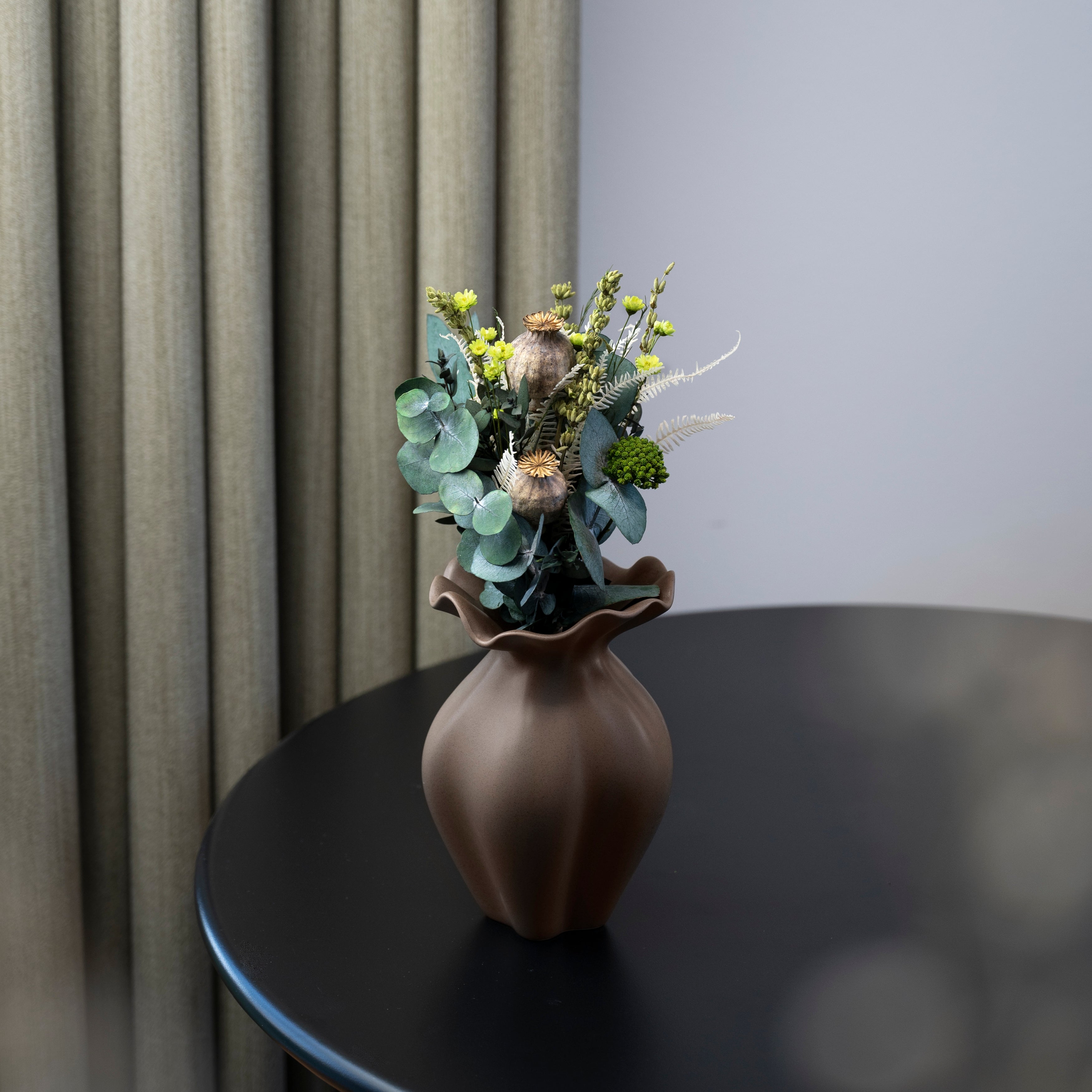 Den skulpturelle og organiske keramikkvasen er ideell for Ä pynte hyller, badet eller en liten entré pÄ en vakker kommode eller skjenk. Vasen tar ikke mye plass, noe som gjÞr den perfekt for smÄ rom. La den stÄ alene som et kunstverk, eller sett en av vÄre buketter i vasen for et vakkert uttrykk. Perfekt for deg som Þnsker stil og funksjonalitet i innredningen.